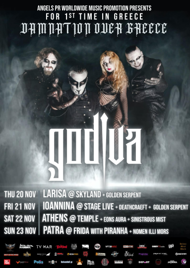 Το μεγαθήριο του συμφωνικού death metal GODIVA από την Πορτογαλία, εξαπολύει απόλυτη καταστροφή σε όλη την Ελλάδα με τη νέα του βάναυση περιοδεία: “DAMNATION OVER GREECE”.