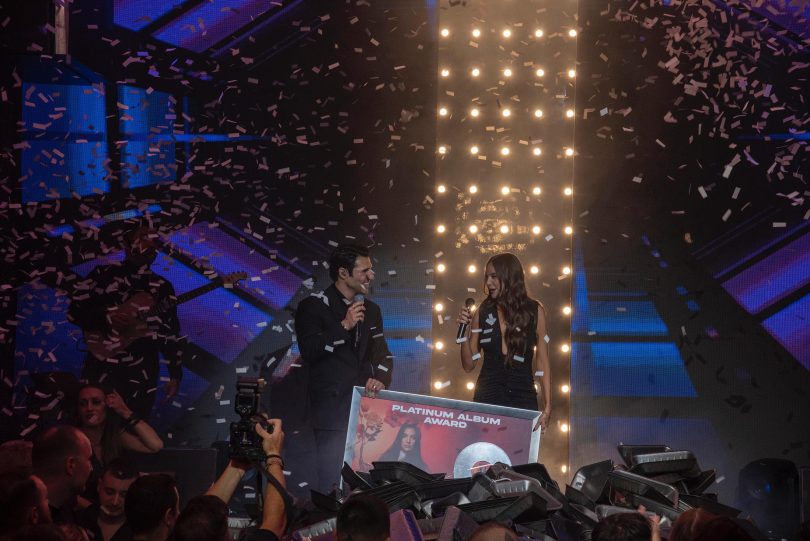 Η Ρία Ελληνίδου δέχθηκε μια απρόσμενη έκπληξη από τη δισκογραφική της οικογένεια, την Panik Platinum, καθώς της απονεμήθηκε πλακέτα για τις πλατινένιες πωλήσεις του album της ενώ βρισκόταν επί σκηνής.