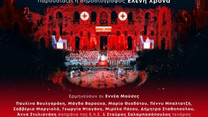 Πολιτισμός Ο Ελληνικός Ερυθρός Σταυρός διοργανώνει μια μεγάλη μουσική συναυλία, με τίτλο «Τραγουδάμε τις Πανανθρώπινες αξίες» με τον Πασχάλη Τόνιο. 2 μήνες ago