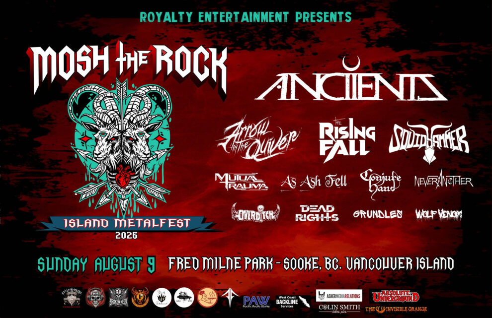 Vancouver Island is set to shake when Mosh the Rock Island MetalFest 2026 takes over Fred Milne Park in Sooke, BC on Sunday, August 9, 2026. This all-ages, family-friendly outdoor metal festival brings together a stacked lineup of international, national, and regional talent for a full day of crushing riffs, pit energy, and community spirit on the West Coast.