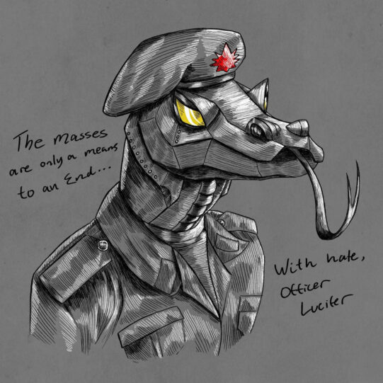 OFFICER LUCIFER’s sound is rooted in raw aggression born from a fusion of genres including metal, punk, grunge, and Latin rhythms. “Swallow” unleashes an anguished-fueled attack of gritty distortion, driving rhythms, and melodic vocal melodies performed by Yves Myr. The song exists within OFFICER LUCIFER’s narrative world where engineered hybrids rise up against their human creators, mirroring real-world cycles of control, corruption, and resistance.