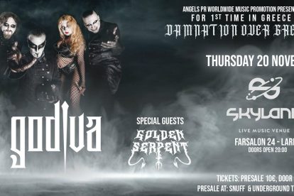 Η ANGELS PR Παρουσιάζει Για Πρώτη Φορά Στην Ελλάδα τους GODIVA – “DAMNATION OVER GREECE” Ετοιμαστείτε για την απόλυτη κατάβαση στο σκοτάδι! Το μεγαθήριο...