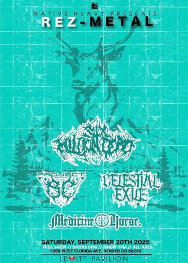 Native Heavy Presents is proud to bring an unforgettable night of Rez-Metal featuring Indigenous metal powerhouse Project BC, alongside Six Million Dead, Celestial Exile, and Medicine Horse. The event kicks off at 7:00 PM on September 20, 2025, at Levitt Pavilion in Denver, CO.
