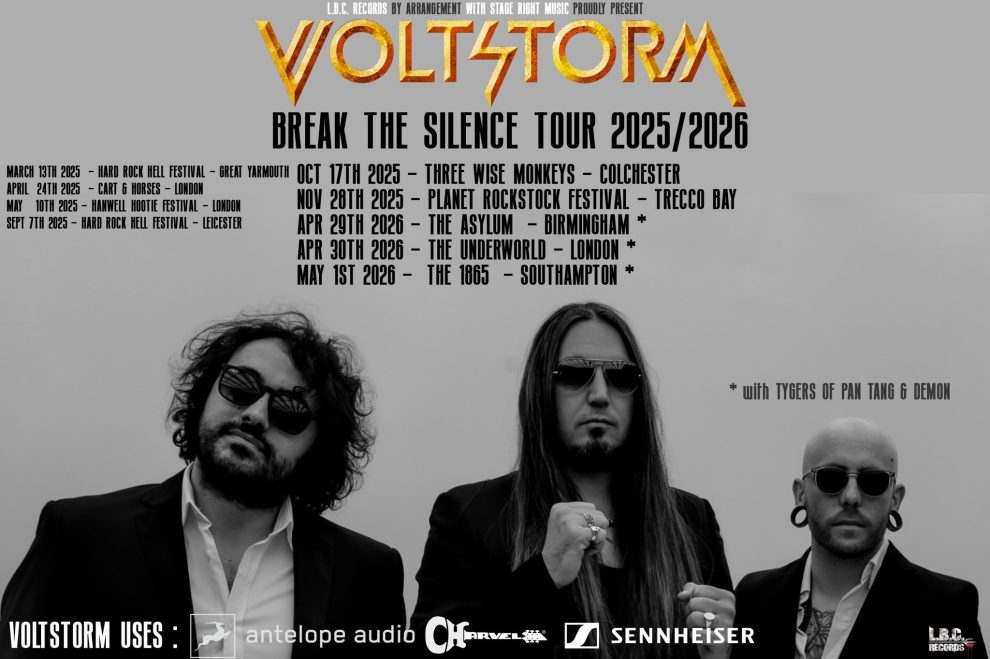 L.B.C. Records is proud to announce a major new touring opportunity for heavy metal upstarts Voltstorm, who will join legendary New Wave of British Heavy Metal acts Tygers of Pan Tang and Demon as special guests on a 2026 UK tour. At the same time, Voltstorm will mark the occasion with a celebratory digital release of their live album Live Silence recorded earlier in the year.